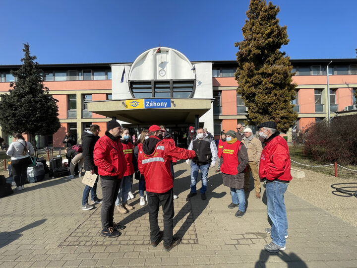 Les policiers hongrois gardent les portières des trains en provenance d’Ukraine avant de faire descendre les femmes et les enfants en priorité. ©Daniel Psenny