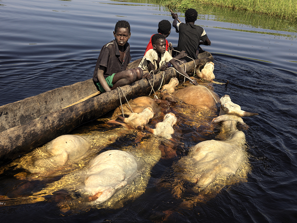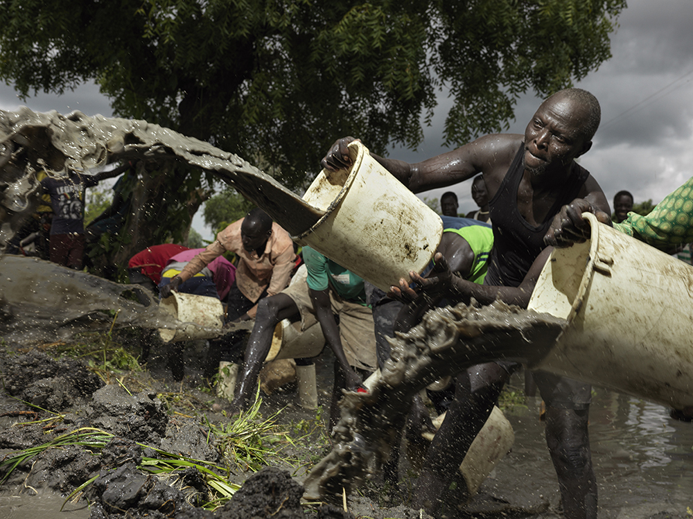 Au début de l’année 2020, j’étais à l’église et, pendant la prière, j’ai demandé à être guidé. Juste après, c’était l’heure du cantique, j’ai ouvert le livre de chant et j’ai trouvé un petit papier avec un drapeau. Je ne reconnaissais pas ce drapeau et je l’ai retourné pour découvrir qu’il s’agissait du Soudan du Sud. Je n’avais jamais visité ce pays et j’ai été intrigué, mais je n’y ai plus pensé par la suite. Puis je suis retourné en Afrique et le Covid a frappé le monde entier. Pendant la pandémie, j’étais isolé et coincé au Kenya, sans savoir d’où viendrait mon prochain travail. Cette situation a duré près de six mois, mais mon anxiété professionnelle s’est apaisée lorsque j’ai reçu la première d’une longue série de commandes concernant le Soudan du Sud. J’y ai d’abord été envoyé par une ONG appelée Action Contre la Faim pour travailler sur leur réponse au Covid, mais après avoir terminé ce travail, on m’a demandé de documenter les inondations, dont je ne savais pas grand-chose. J’ai compris que c’était peut-être en lien avec le papier dans l’église. Cela m’a inspiré à poursuivre un travail de documentation. Ce travail est essentiel, car les inondations déplacent environ un million de personnes chaque année, soit environ 35 % de la population. Cette histoire doit être racontée, car le pays est en difficulté et les médias en parlent peu.