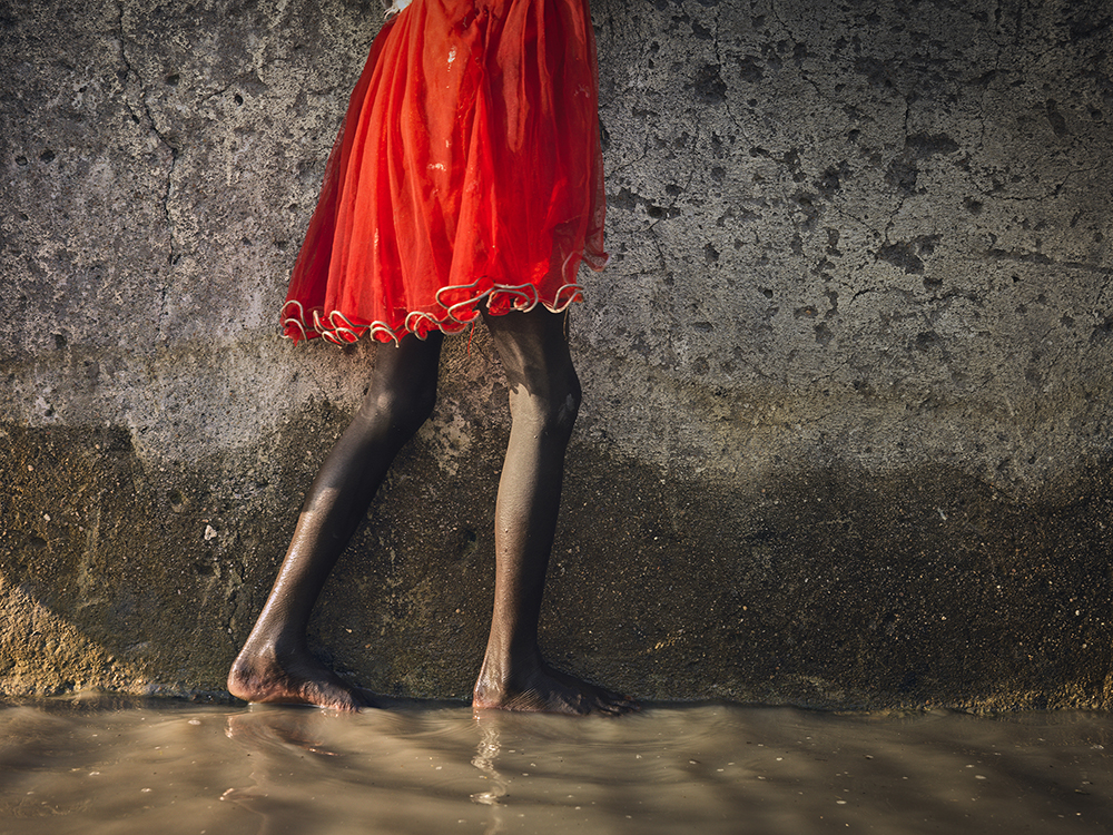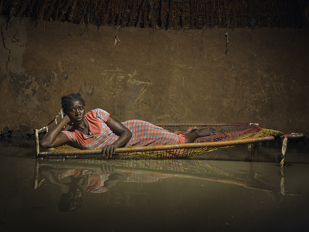 Le regard provocateur de Nyakeak Rambon alors qu’elle pose pour un portrait dans les eaux de crue avant de retourner dans la salle de classe où elle s’abrite, traduit la résilience dont font preuve les communautés. Elles sont fortes et veulent rester dans les zones touchées par les inondations pour sauver leurs terres.