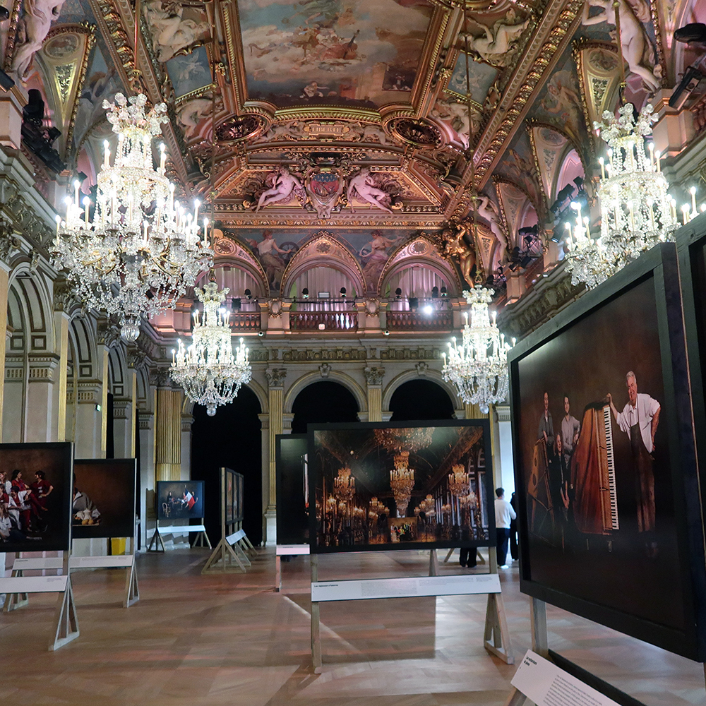 Il est là dans l’Hôtel de ville de Paris souriant, détendu, poignée de mains franche, le célèbre Yann Arthus-Bertrand, jouissant d’une notoriété exagérée selon certains mais très méritée pour tous ses multiples aficionados de par le monde. Ce n’est plus « La terre vue du ciel » mais la France vue du cœur, superbe « Album de famille » réalisé en collaboration avec le démographe et historien Hervé Le Bras, qui s’est installée pour quelques temps dans les majestueux salons de l’Hôtel de ville de Paris mis à disposition des auteurs. Un studio photo éphémère complète le dispositif et on fait tranquillement la queue pour se faire photographier afin que sa photo rejoigne les cent cinquante déjà exposées. Le photographe est heureux d’avoir pu mener à terme ce portrait très vivant d’une France qui est loin du climat anxiogène ambiant, fruit d’une réelle complicité allant au-delà du temps d’une prise de vue. Chaque image est l’exposition d’un petit soleil familial ou amical, vécu loin des orages, les menaces oubliées, rayonnant d’une évidente luminosité.