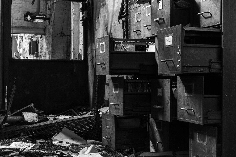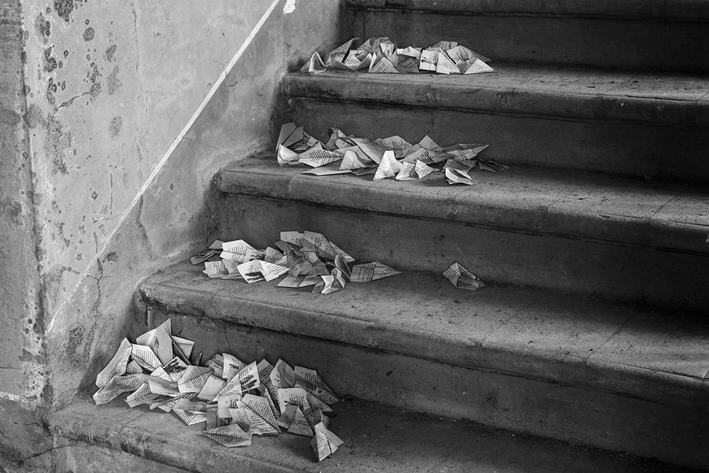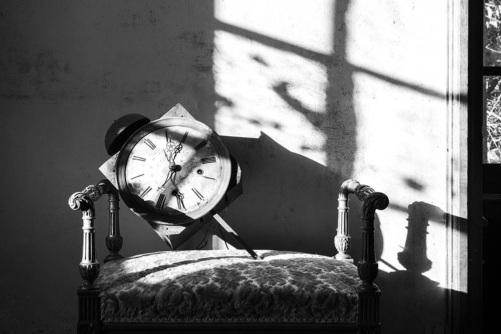 Un mot de l’auteur: « Il y a bien quelque chose de particulier avec la photographie en noir et blanc. Quelque chose de plus profond, de plus poétique, de plus sensible. Et si je ne photographie pas les gens, et que les rares vêtements présents dans ce livre sont en lambeaux, je me suis quand même dit qu’après dix livres, le moment était venu pour moi de m’attaquer à ce sujet. L’idée m’est venue en 2019 lorsque je suis tombé sur ces quatre Rolodex dans une fonderie auvergnate. Je les ai trouvés magnifiques. Comme toujours ou presque, je n’ai rien touché avant de déclencher. Le mur devant lequel ils se trouvaient était parfait. La lumière qui venait de la gauche également. Je n’ai pas cherché plus loin quand il a fallu choisir la couverture de cet ouvrage. Même si j’ai commencé en utilisant bien plus souvent le grand angle que le zoom, j’ai photographié des détails depuis mes débuts dans ces lieux abandonnés. La proportion de plans resserrés a augmenté dans la perspective de ce livre. Depuis peu, ils sont même majoritaires. J’ai déjà présenté quatre séries en noir et blanc : les aéroports, les mannequins dans les vitrines, les aires de jeux désertées et la vie au milieu des vestiges de l’URSS. Les lecteurs qui en plus d’être fidèles sont curieux les retrouveront sur mon site. Même si certaines séries ont un lien indirect avec l’abandon, je n’ai jamais montré mes photos de lieux abandonnés en noir et blanc. Toutes les images de ce livre sont inédites. La profondeur, la poésie, la sensibilité du noir et blanc évoquées plus haut se marient parfaitement avec mon univers de lieux abandonnés, particulièrement lorsqu’on s’arrête sur les détails qu’ils offrent. Rideaux éventrés qui flottent dans le courant d’air, horloges arrêtées, poupées démembrées et chaises renversées offrent mille nuances de gris, car c’est bien de cela dont il s’agit. Ce n’est pas un hasard si les Grecs avaient trois mots différents pour dire le « gris ». Idem en latin. Quand la lumière s’en mêle et baigne de ses rayons des boules poussiéreuses sur un tapis de billard ou un piano majestueux qui n’a pas résonné depuis longtemps, elles sont toutes là, les milles nuances. Le gris est plein de mystère. Loin d’être neutre, c’est la couleur de la nuance, de l’ambiguïté. C’est aussi celle de la contradiction, entre le positif associé au blanc et le négatif associé au noir. Le gris est complexe, c’est le point de rencontre de tous les possibles. »