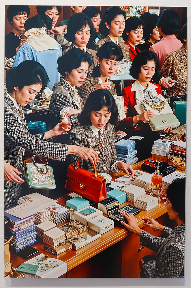 Au gré de la déambulation, on peut observer que le mouvement « Je peins / brode / gratte / colorie ma photo » ne faiblit pas, bien que n’atteignant que rarement le niveau des grands prédécesseurs comme William Kleinou Peter Beard. Passage rapide à l’espace « digital » où, à l’évidence, la tendance à surfer opportunément sur le numérique (coucou l’IA !) l’emporte sur l’intérêt de ce qui est montré, malgré quelques pièces sortant du lot comme celles de la Singapourienne Niceaunties ou du duo Brodbeck et de Barbuat.