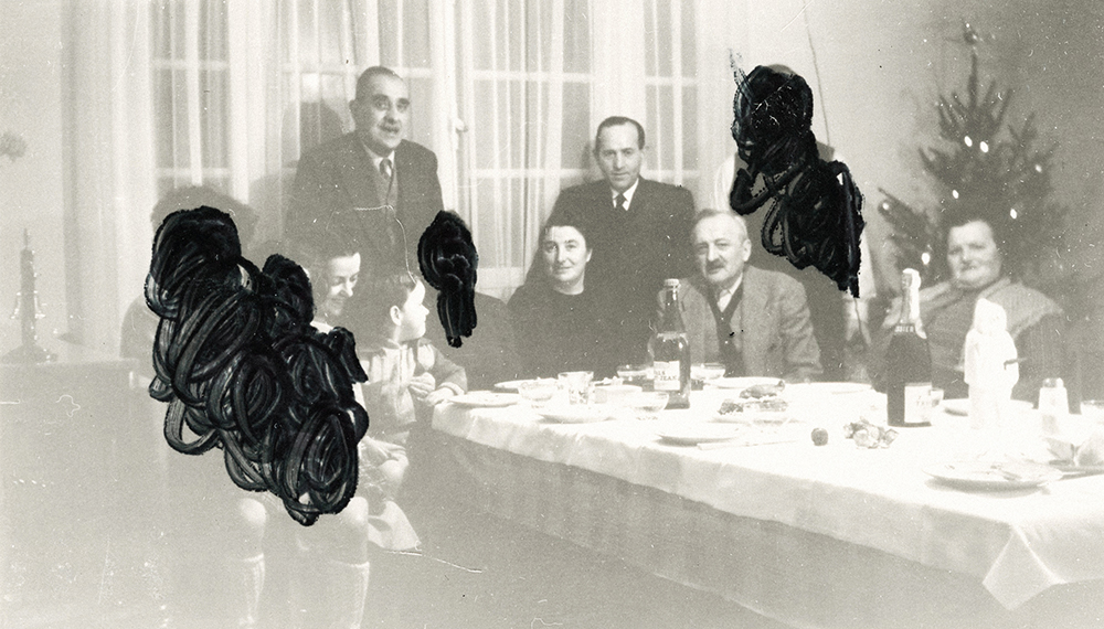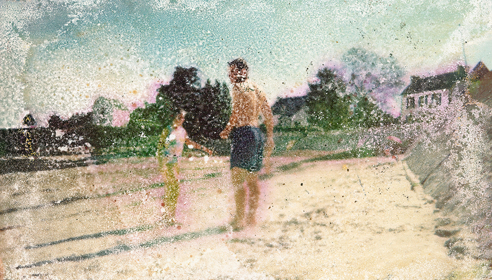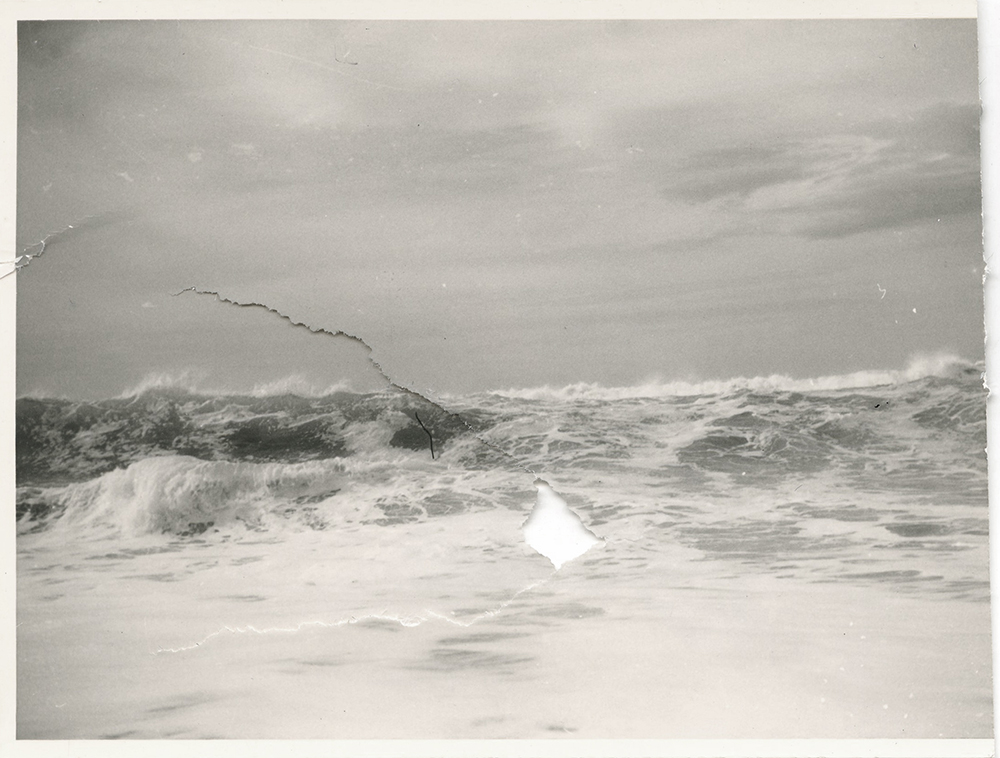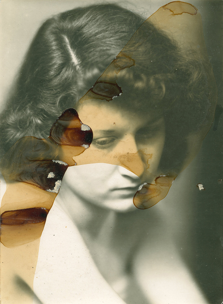 Au nombre des passionnés, le collectif « le commun des mortels » piloté par Élise Pic et Jacques Barbier qui sont à la tête d’une collection de 3 millions d’objets pho­tographiques couvrant près de deux siècles d’histoire de la photographie, du daguerréotype au numérique. Le duo propose au Centre d’art et de Photographie de Lectoure une exposition tout à fait originale baptisée « Dommage ! », un titre compréhensible de deux manières, soit au sens de dégât soit comme regrettable. Et il aurait été effectivement fort dommage de ne pas pouvoir apprécier ces images présentées qui ont toutes la particularité d’être endommagées et ce pour diverses raisons. Déchirées, gribouillées, détériorées, recollées, pliées, moisies, tâchées, effacées, délavées, brûlées, ces photos d’anonymes marquées par le temps racontent plusieurs histoires. Tout d’abord celle capturée afin d’écrire le grand récit familial, à figer dans le temps des moments heureux ou marquant les grandes étapes de la vie. Ensuite elles racontent leur altération, soit par accident soit par la volonté humaine. Déchirée elle va évoquer la colère, scotchée le repentir, délavée le temps qui passe, moisie l’accident. Enfin, troisième strate, le surplus esthétique involontairement généré par cette dégradation qui s’approche d’une pratique artistique existante agrémentant des photographies de broderies, dessins, écritures, lacérations voire même d’impact de tir au pistolet (tirer le portrait au sens premier…). Il ne s’agit pas d’un éloge de la photo ratée, dont le propos ne concerne que le moment même de la prise de vue, doigt devant l’objectif ou flou involontaire. Là on a glissé plus loin sur l’échelle du temps, on est a posteriori, une fois l’image fixée sur son fragile support, ayant subi moult avanies, au gré d’événements ou de la volonté humaine, cette action lui donnant une toute autre apparence.