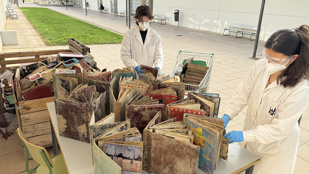 Le 29 octobre 2024, la province de Valence en Espagne a connu la catastrophe naturelle dévastatrice. Plus de 60 000 personnes dans 78 municipalités ont subi les conséquences des pluies intenses et des inondations qui ont détruit les infrastructures et privant les habitants d’eau potable et d’électricité. L’impact humain a été tragique, avec 237 morts et des milliers de logements détruits. Les opérations de sauvetage et de nettoyage ont été menées avec la participation de professionnels et de milliers de bénévoles qui ont travaillé à nettoyer les 800 000 tonnes de débris obstruant les rues. Une marée de boue s’était répandue dans les rues et dans les maisons emportant tout sur son passage. Parmi les meubles, les véhicules, les débris charriés par le flux, d’autres beaucoup plus fragiles furent emportés, des photographies et des albums de famille flottant à la dérive dans une boue chaotique qui engloutissait tout. La même vague de boue qui avait violemment arraché aux habitants leurs biens les plus précieux, menaçait également de les dépouiller de manière définitive de leur identité et de leur mémoire fixées sur les photographies.