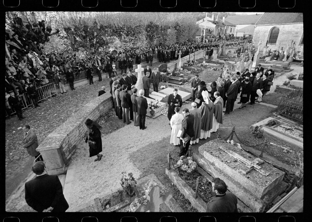 Le jour des obsèques du général, alors que la presse mondiale était parquée derrière les murs en contrebas du petit cimetière, Gérard, lui, se trouvait seul, juché sur une échelle dans la maison voisine dont il était devenu le locataire. Depuis son perchoir, il disposait d’une vue en contrechamp unique et exclusive sur la famille rassemblée autour d’Yvonne de Gaulle, qui s’en allait, seule et lentement, silhouette digne vêtue de noir dans ce moment d’histoire. Ses clichés firent, une fois encore, le tour du monde.