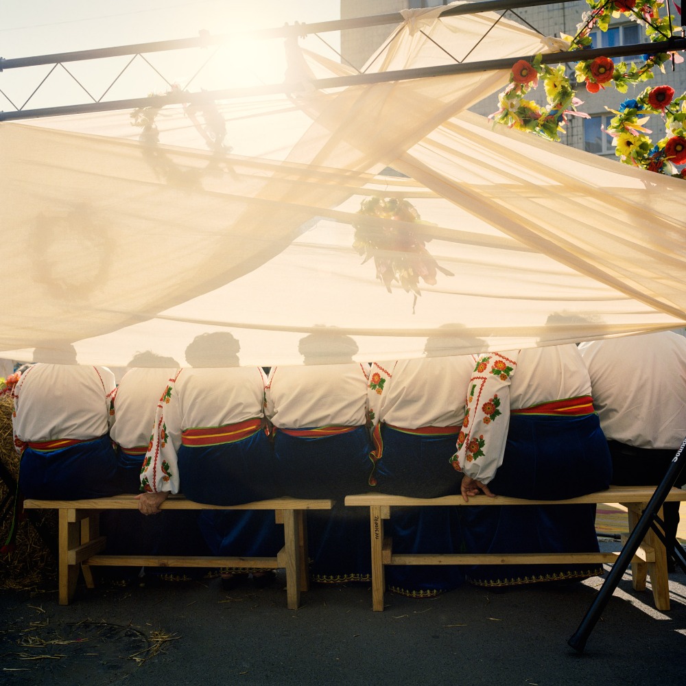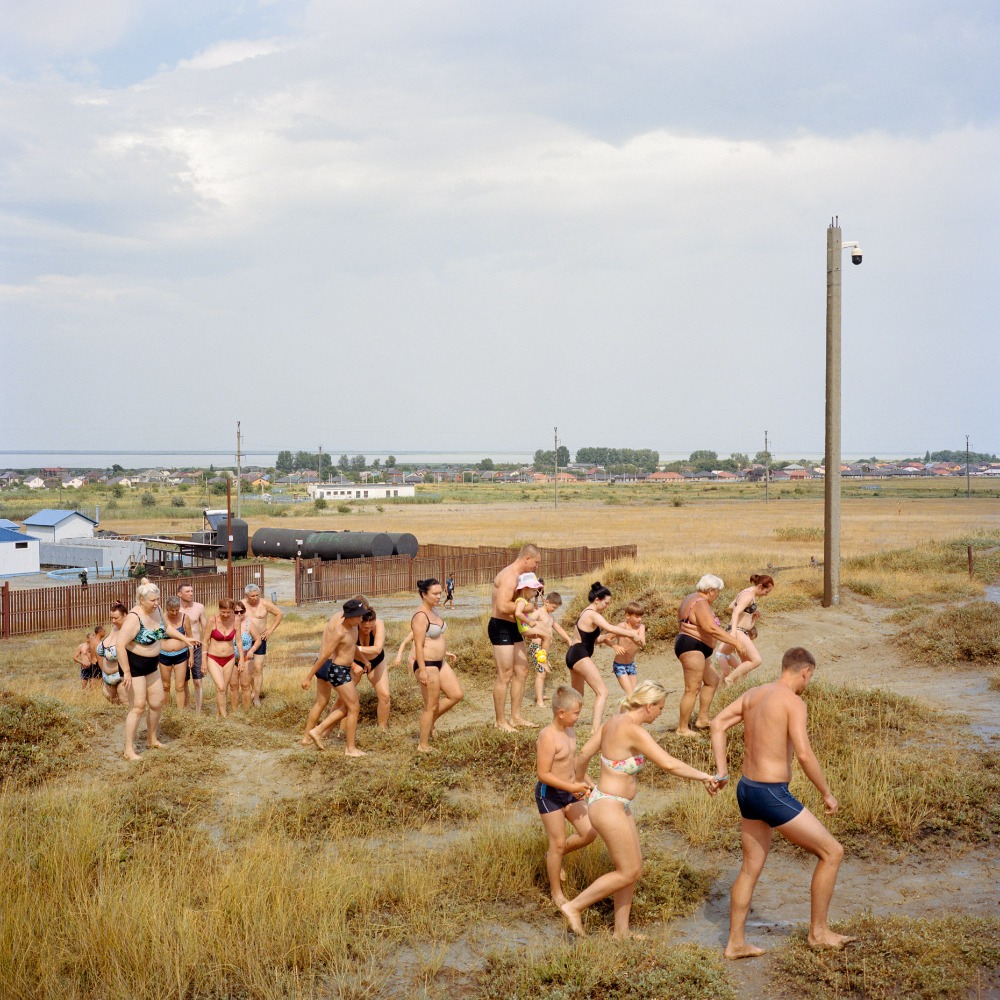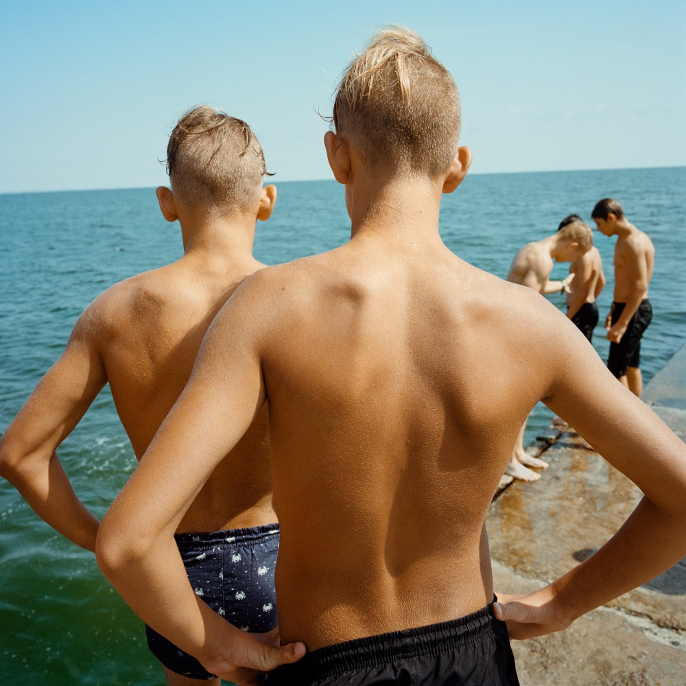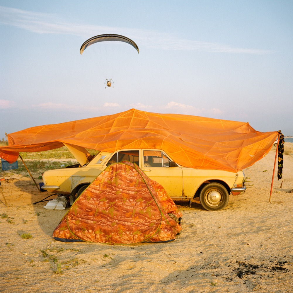 « La mer d’Azov m’est apparue dans un éclat de lumière. Dans mes souvenirs de ce premier été russe, des reflets mauves chatoient sur l’eau turquoise ; les derniers baigneurs, barbotant dans l’eau peu profonde, discutent à un jet de pierre de la plage ; la fumée aromatique des barbecues emplit l’air et le tintement des verres de vodka scelle la fin d’un après-midi ensoleillé. Cette lumière unique, douce et colorée, a guidé mes premiers pas sur les rives de l’Azov, la petite sœur de la mer Noire, où je suis revenu chaque été depuis 2019. Lors de cette première rencontre, la mer d’Azov a suscité en moi l’élan romantique dont j’ai besoin pour un travail de longue haleine. Je me suis promis de photographier, année après année, les dégradés de l’horizon, si discordants avec les conceptions visuelles habituelles de ces régions, comme un fil conducteur formel qui orienterait mon exploration. Mais ce récit estival, que j’espérais rempli de lumière, est aussi la chronique d’un monde au bord de la disparition, consumé par la guerre qui allait bientôt éclater. En 2019, la région était déjà une zone de tensions intenses. Les combats faisaient rage dans le Donbass depuis cinq ans, la Crimée avait été annexée et la mer d’Azov était de facto occupée par la marine russe. Sur ces rivages paisibles, un monde vacillait au bord du précipice de l’histoire. Au moment où j’écris ces lignes, cela fait presque trois ans que l’Ukraine a perdu ses horizons d’Azov ; peu d’Ukrainiens espèrent les revoir un jour. La douceur visuelle que j’ai trouvée sur ces rives contrastait étrangement avec la montée du mal. Ce livre cherche à transmettre cette ambiguïté fondamentale : sous la plage, la fureur gronde et les obus explosifs sont prêts à briser les nations. Influencé par la tradition américaine de la photographie de route, ce projet privilégie les détours et l’errance plutôt qu’une approche journalistique, ce qui signifie que la région et ses singularités, plutôt que les événements, occupent le devant de la scène.