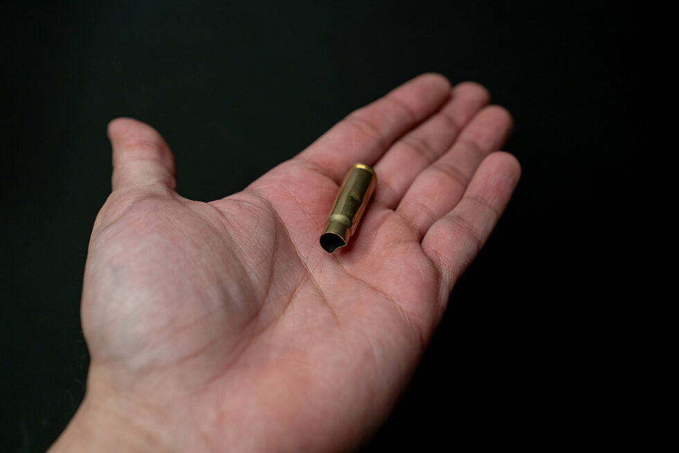 République islamique d’Iran, Téhéran le 9 janvier 2026 : Une douille de balle, ramassée lors des manifestations dans le quartier de Seyyed Khandan – Photo : Bahram / Sipa press