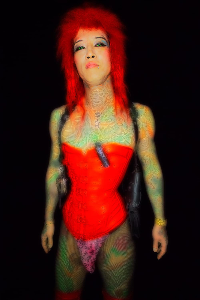 Longtemps la société japonaise portée par une activité économique prospère, s’est présentée comme homogène. A partir des années 90, la situation a changé, les transformations sociales, politiques et économiques bouleversant le pays devenu plus fragile et instable. Dans ce contexte marqué par un sentiment généralisé d’insécurité quant à l’avenir, les jeunes ont particulièrement souffert, un fossé générationnel se creusant avec leurs ainés. Certains s’isolent comme les hikikomori qui restent cloitrés chez eux, d’autres rejettent les normes sociales et se sont crée leurs propres espaces d’expression et de liberté. Loin des conventions vestimentaires et esthétiques, ces tribus poussent à l’extrème la mise en scène de leur nouvelle identité dans une démesure de signes qui les différencient. Intéressé par l’audace et la diversité des accoutrements de ces tribus, le photographe Yoichi Nagata a entamé la série « Star of the stars » pour laquelle il a photographié des centaines de jeunes gens. Bien plus que le simple témoignage d’une sous-culture underground souvent associée au cosplay et aux déguisements, l’auteur dévoile une multitude de personnalités uniques dont le kitsch et l’excès incarnent alors une rébellion assumée face à la pression sociale dominante. Exister pour être vu et être vu pour exister.