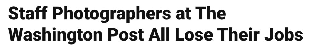 Capture d’écran du titre de Petapixel : Le Washington Post a licencié environ un tiers de son personnel, y compris la totalité de ses photographes permanents.