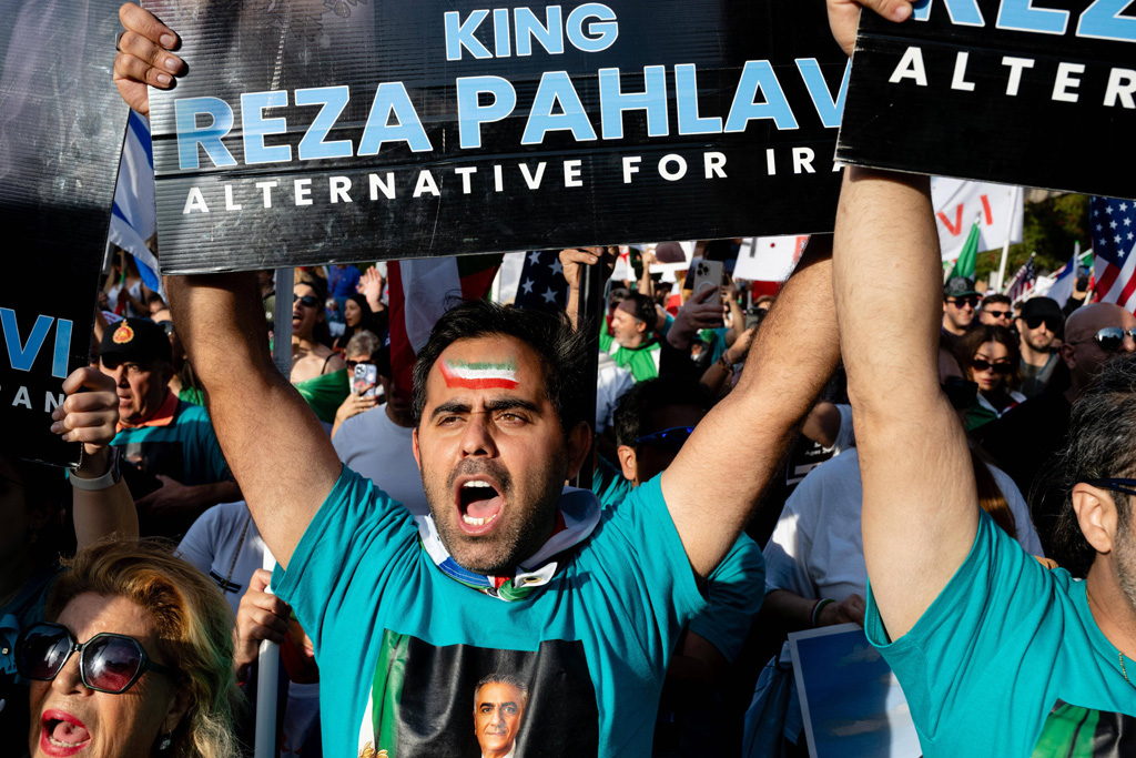 February 14, 2026, Los Angeles, California, USA: A protester holds a sign in support of Reza Pahlavi while marching during a Freedom for Iran rally in Los Angeles, California. (Credit Image: © Ghawam Kouchaki/ZUMA Press Wire)/20260214_zsp_k198_008/ZEUS/2602150651