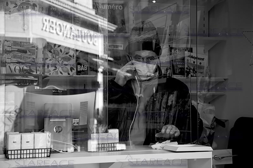 Paris France Vie quotidienne. Vendeur kiosque à journaux – Photo : Sebastien Filosa / Starface