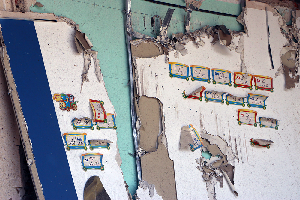 En réalité, surtout au printemps 2022, le focus était mis sur les millions d’Ukrainiens qui fuyaient de l’est du pays vers l’ouest ou vers l’Europe. Il y avait peu d’information spécifique dans les médias ukrainiens sur la destruction des lieux d’enseignement. Parce que le problème n’était pas là, mais dans les combats, les déplacements de population, le manque d’essence, etc. Avant de me rendre sur place, j’ai tracé des cartes avec l’emplacement des établissements scolaires, de façon à avoir des documents suffisamment précis pour évoluer dans les lieux à pied éventuellement si la route était impraticable. Il me fallait aussi anticiper une absence de réseau GPS. C’est ce que j’ai fait pour Irpin et Butcha par exemple que j’ai pu visiter dès le recul des troupes soviétiques. Une fois sur place, je documentais si l’école était détruite ou pas. Ainsi à Irpin, toutes les écoles n’avaient pas été détruites. Certaines n’avaient même que très peu souffert, seulement quelques vitres brisées.