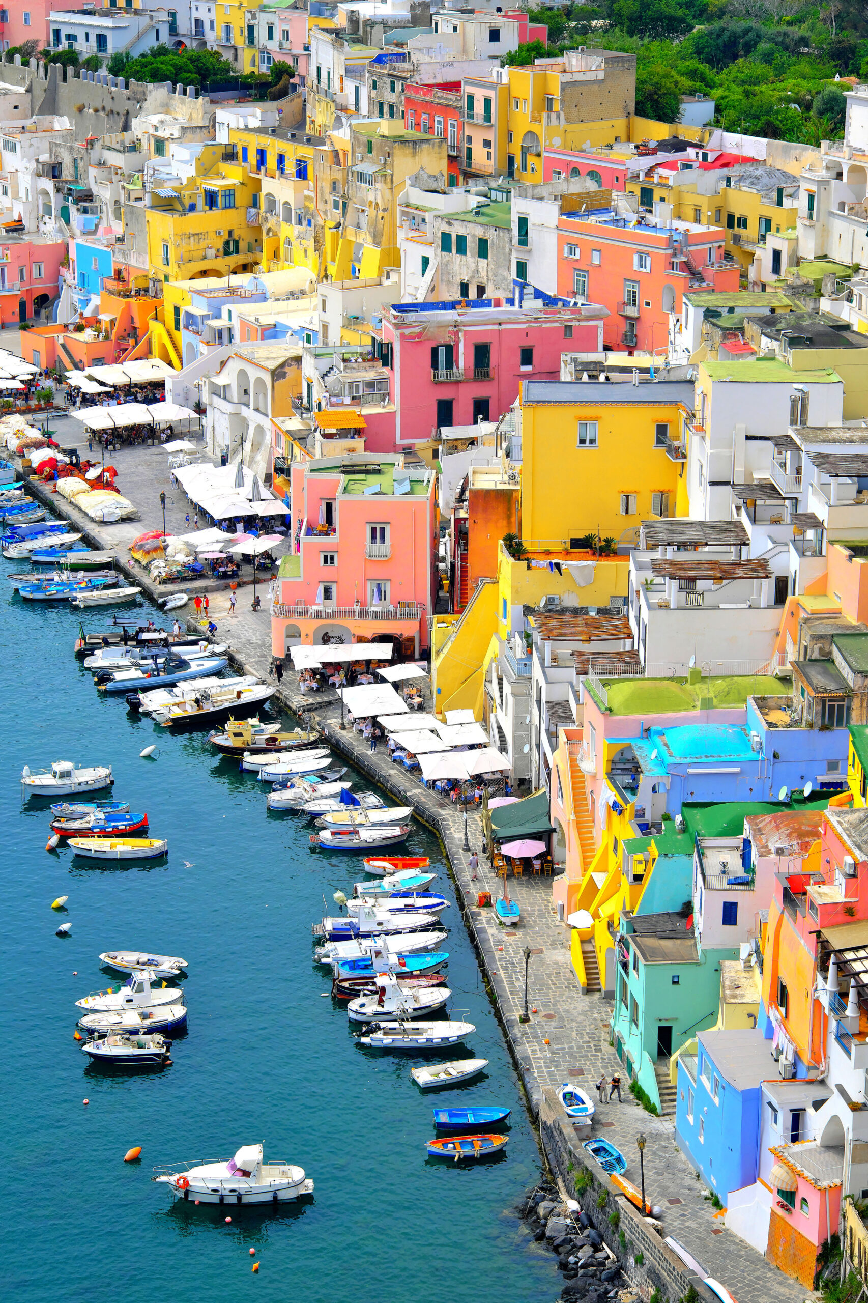 Vue du village de la Marina Corricella à Procida, Golfe de Naples, Italie. Procida est la plus petite île du golfe de Naples